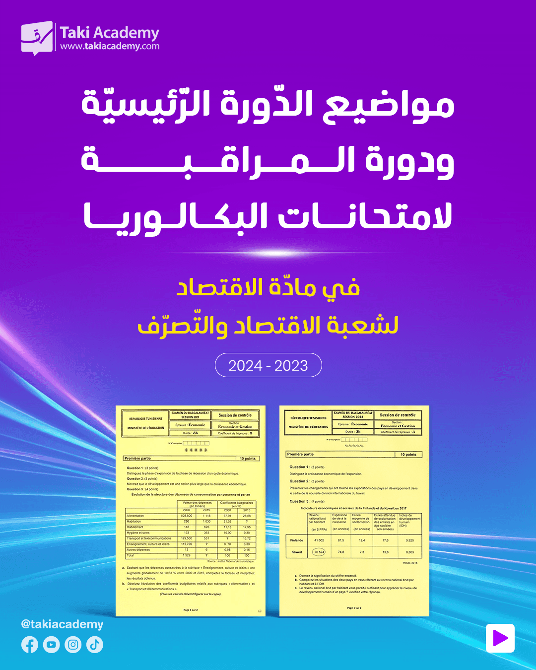 إذا كنت بكالوريا في شعبة الاقتصاد والتصرف هاذي مواضيع امتحانات الدورات السابقة للبكالوريا سواء الرئيسية أو المراقبة ولسنوات و في مادة الاقتصاد فرصة باش تتعرف على الدروس إلي سجلت حضورها في السنوات السابقة وحت...