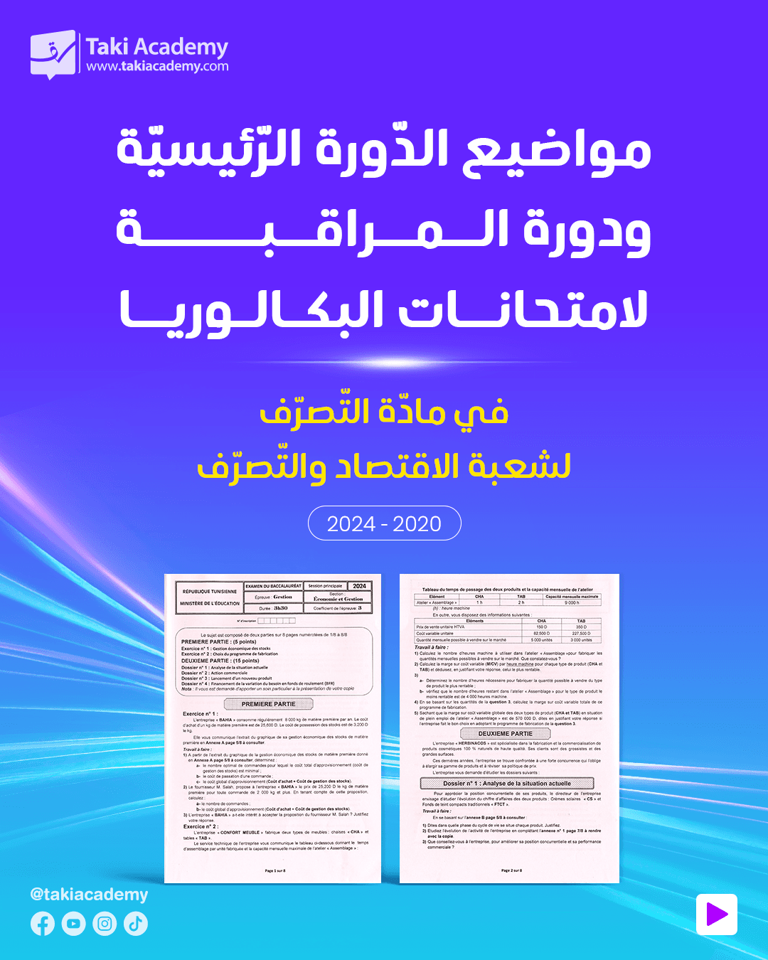 Bac Eco. | Gestion | مواضيع امتحانات البكالوريا من 2020 إلى 2024