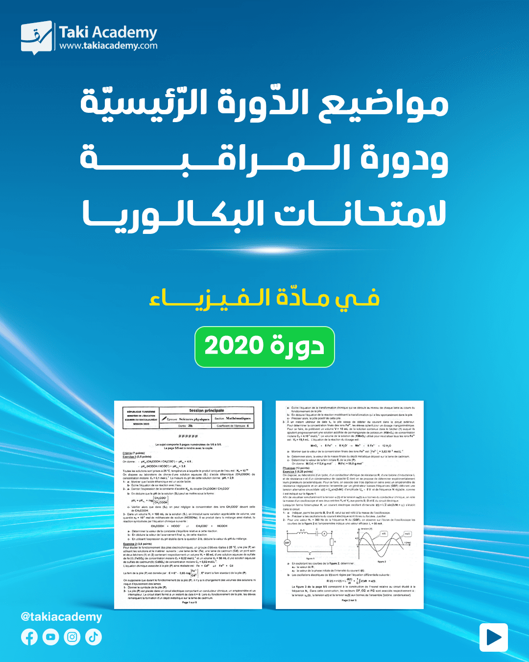 Bac Scientifiques | Physique | مواضيع امتحانات البكالوريا 2020